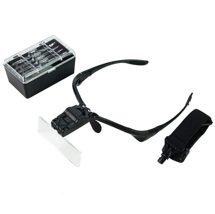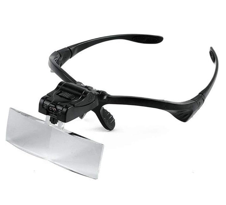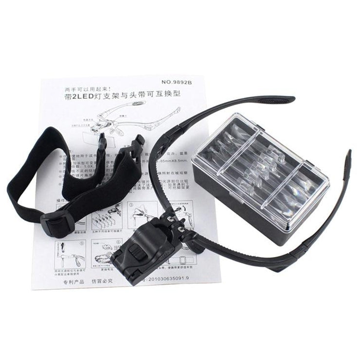 Magnifying glasses with headband and LED light with 5 interchangeable magnifying lenses