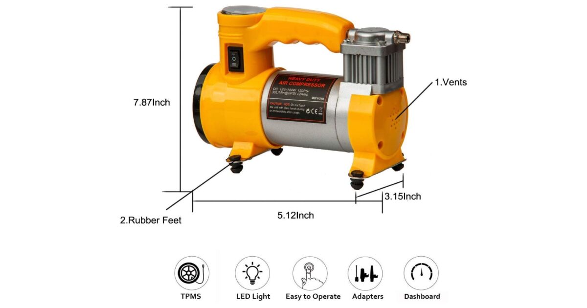 This multi-functional, yellow air compressor is ideal for quickly and easily inflating cars, bicycles, balls and other inflatables. The built-in... Read more