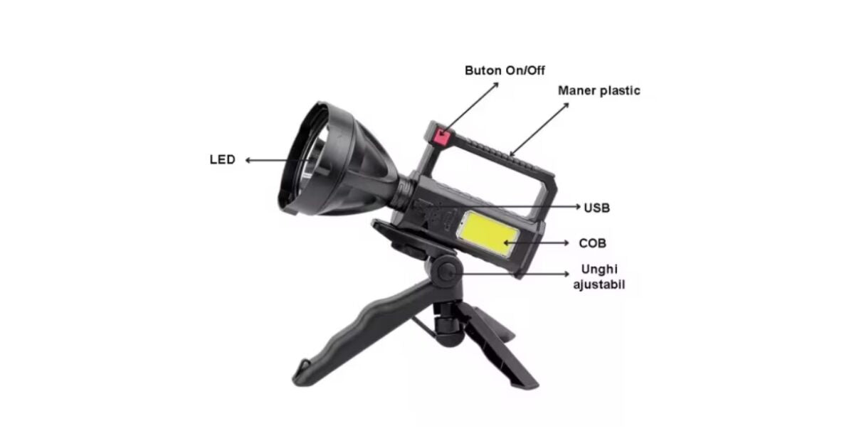 LED flashlight with stand L-832 rechargeable -USB- power - 10W